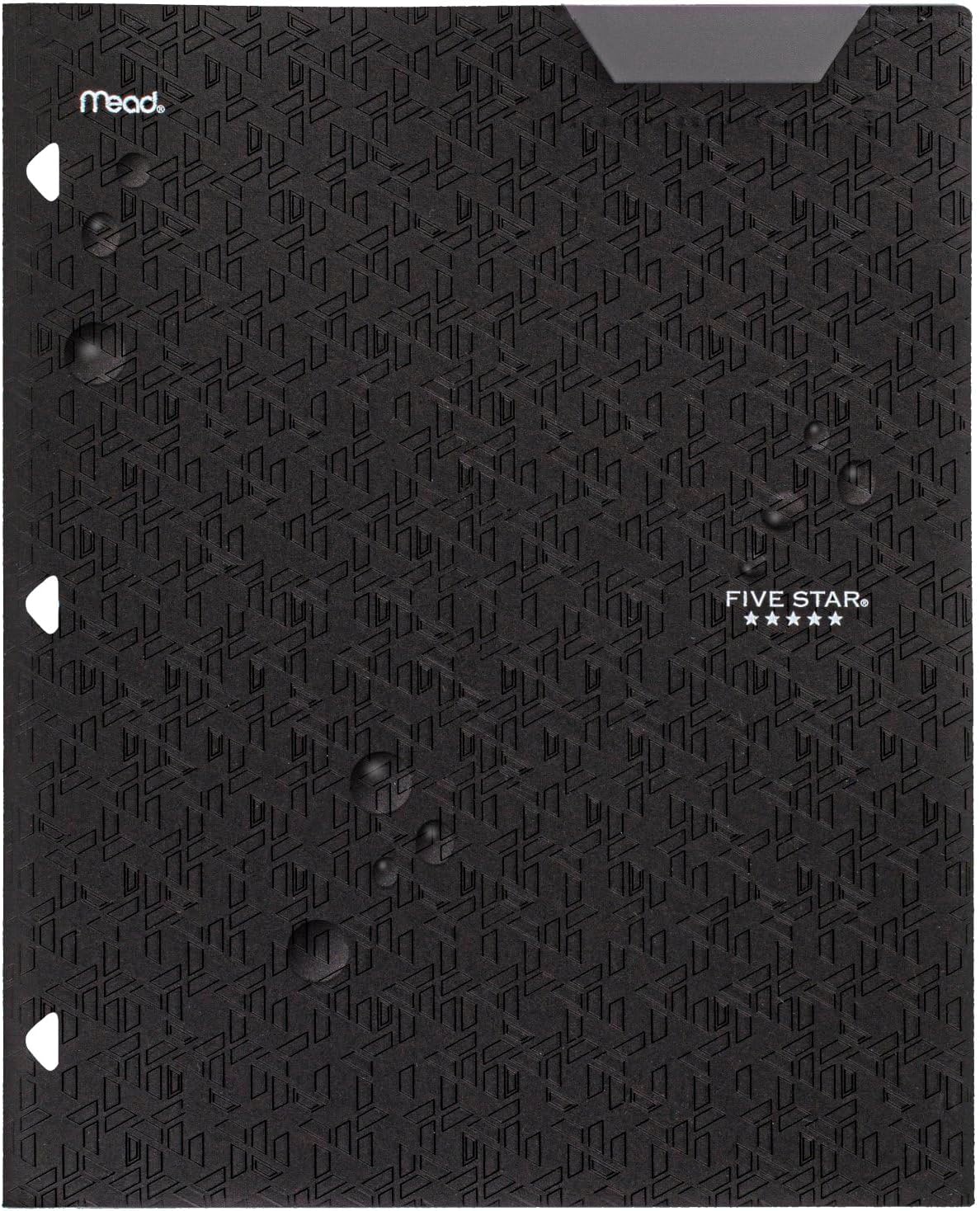 LASTS ALL YEAR. GUARANTEED! The Five Star Stay-Put Plastic Folder helps keep your papers organized throughout the school year. The pockets and stay-put corner tabs hold 8-1/2″ x 11″ papers. Just tuck the top of your page into the corner tab to keep it safe and secure. Stay organized and quickly identify different folders by writing the subject name on the writable label. This folder is 3-hole punched to store in your favorite Five Star binder. Plus, this durable plastic folder is water-resistant and helps protect your documents from accidental spills. Available in Black. Guarantee is valid for one year from purchase date. Does not cover misuse.