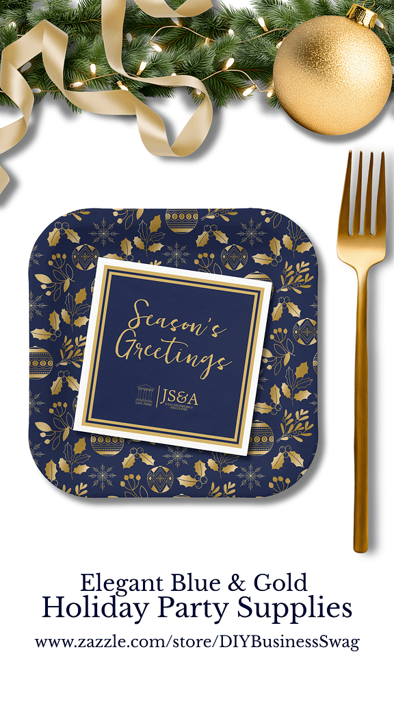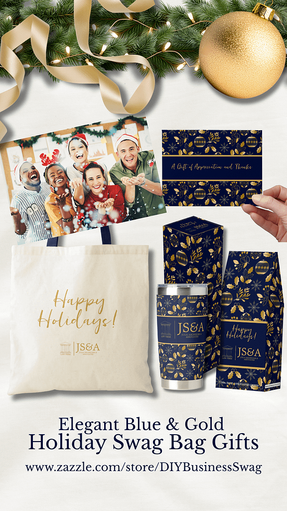DIYBusinessSwag offers turnkey branding solutions. Coordinated designs for your holiday luncheon invitations, party décor, and branded swag bags can be customized with your firm’s logo and colors—no design time wasted.